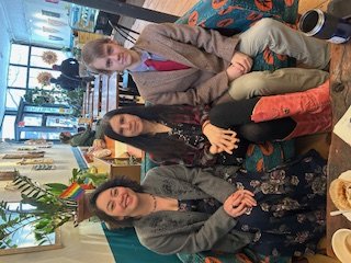 Happy New Year! I hope that you are all well, happy, and cozy in this first month of the new year. I had a busier than usual fall and early winter with traveling and presentations, which is great! The only downside is that I never got to my December Newsletter, so my apologies. We have snow on the ground here in Vermont which, of course, is not unusual for this time of year. I am only hoping that the weather doesen't impede my traveling for my presentations! We'll keep our fingers crossed... I've been posting some fun Instagram reels (videos) on how to make a flannel shirt look glamorous. People seem to like the ideas I've been giving them, and it's really fun for me to do. Check them out on my Instagram page @spiritsoffashionpassion. My pictures below include one of me in a crazy outfit with the statement piece being a 1980s very colorful sequin tunic. I wore this while presenting "Styling with Vintage & Thrifted Items." I am always stressing that one statement piece can change an entire outfit and make it more unique and special. Try it - it's fun! I also included a picture of 3 friends at our first Meetup held at our favorite coffeehouse. The theme was 1920s, and I included a few pieces from my collection. We had loads of fun and plenty of interesting conversation! Following that, we walked through a nearby fabulous antiques shop and saw a case of mourning jewelry. In the Victoian period, people often made jewelry from a loved one's hair. This was practiced both as love tokens and memory pieces of those who had passed. Morbid, yes, but that was the custom. Finally, feel free to reach out to me anytime with questions or ideas for new presentations. I am always willing to come up with something new! Here is what's coming up: Wednesday, January 21 at 12:30 PM: The Golden Age of Hollywood, The Groton Center, Groton, MA Monday, January 28 at 6:00 PM: The History of Undergarments, North Kingstown Library, N. Kingstown, RI Sunday, February 1 at !:15 PM: Pride & Prejudice: Styles of the Jane Austen Era, Village @ Kensington Palace, Meriden, CT Saturday, February 7 at 1:30 PM: The Fashions of Downton Abbey, Saugus Public Library, Saugus, MA Saturday, March 21 at 2:00 PM: The Gilded Age, Wellesley Library, MA Wednesday, April 1 at 1:00 PM: The Golden Age of Hollywood, North Kingstown Women's Club, Quonset Club, N. Kingstown, RI Tuesday, April 14 at 1:00 PM: Virtual Presentation: Fashions Aboard the Titanic, Hopkinton Senior Center, MA Thursday, April 16 at 1:00 PM: Fashions Aboard the Titanic, Middleborough COA, Middleborough, MA Wednesday, May 6 at 10:30 AM: The Roaring Twenties, Springfield, VT Garden Club, Springfield, VT Tuesday, June 30 at 4:00 PM: Colonial Fashion, Attleboro COA, Attleboro, MA Friday, September 18 at 1:00 PM: Boho to Disco: The 1970s, Marion COA, Marion, MA Saturday, October 10 at 12:30 PM: Colonial Fashion, Putnam Library, Putnam, CT